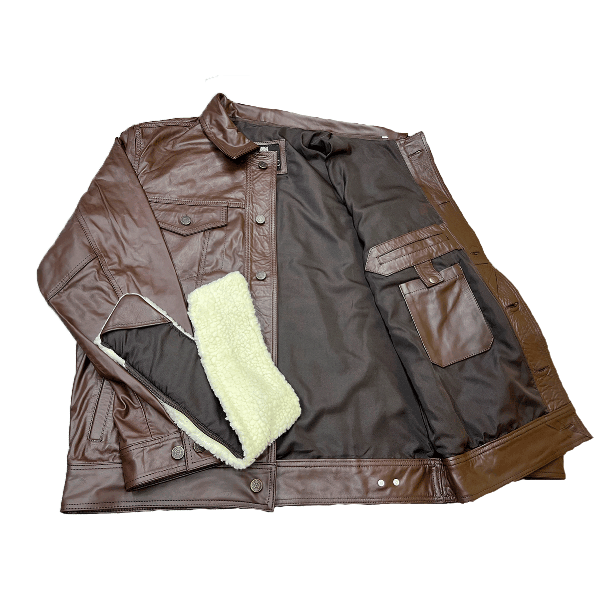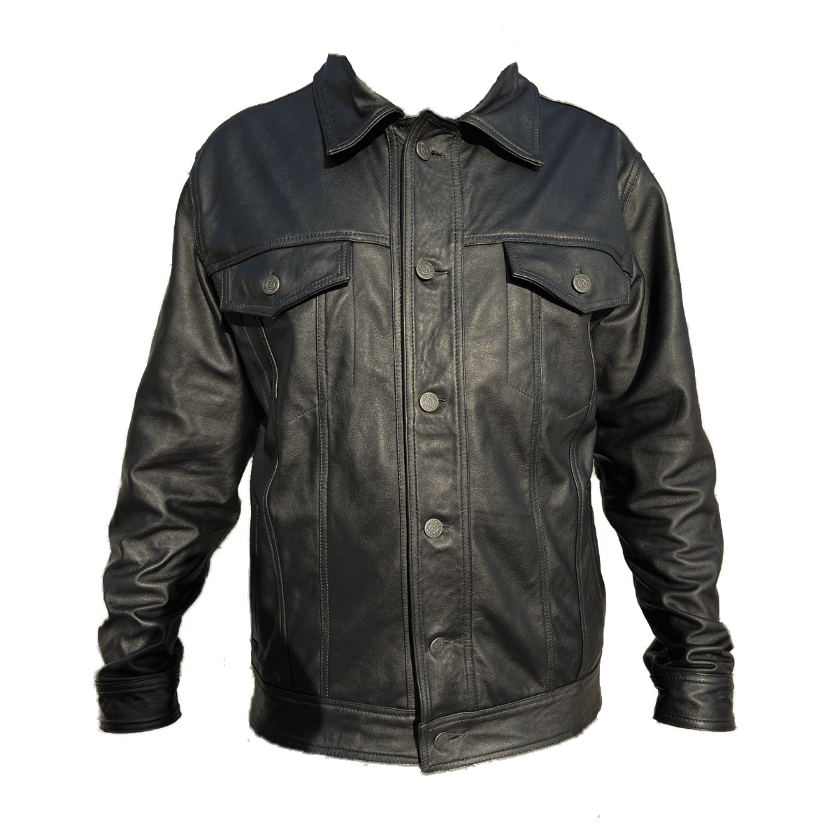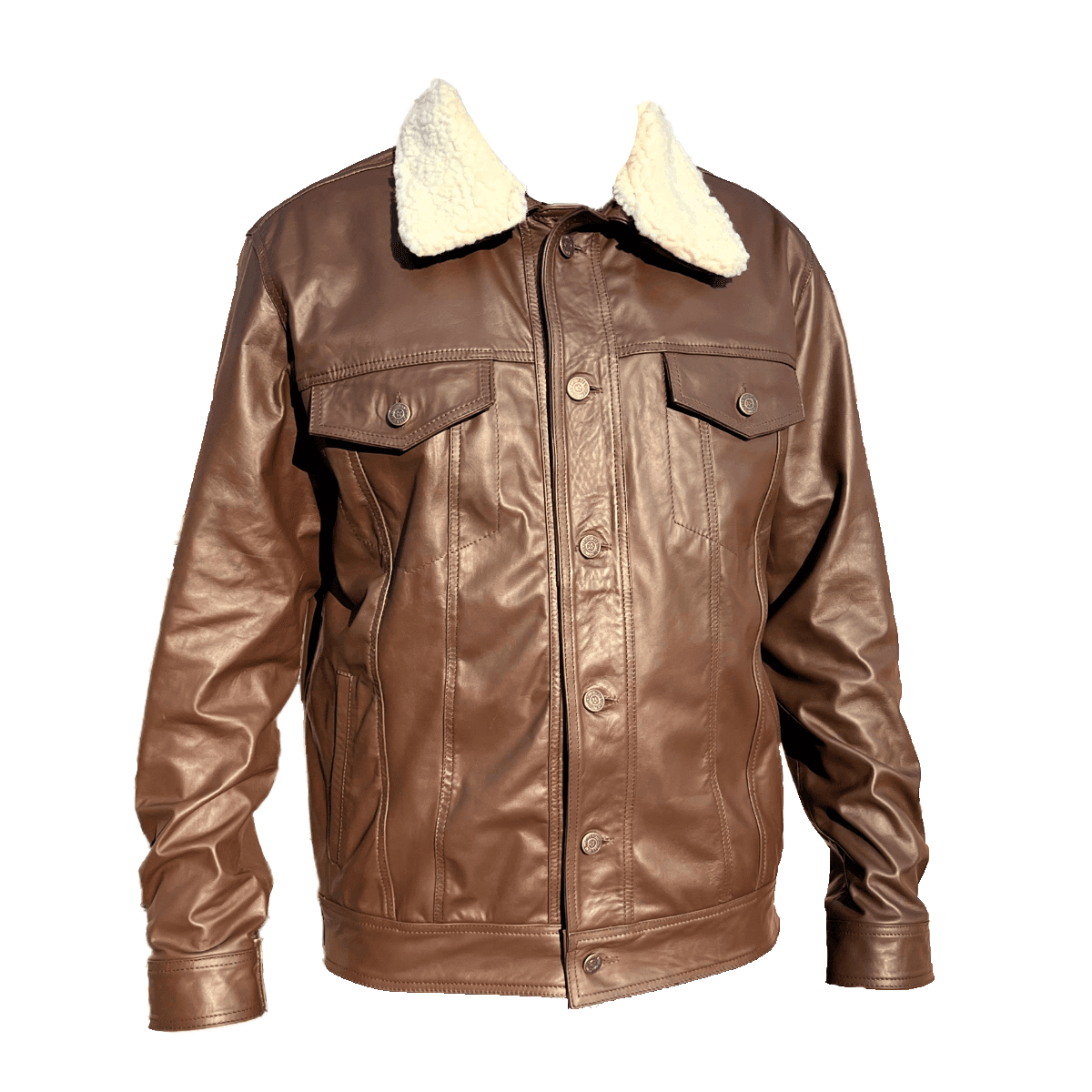 Chamarra Trucker Cuero Vacuno Hombre Empire - Forro Liso Slim Clásica Levis