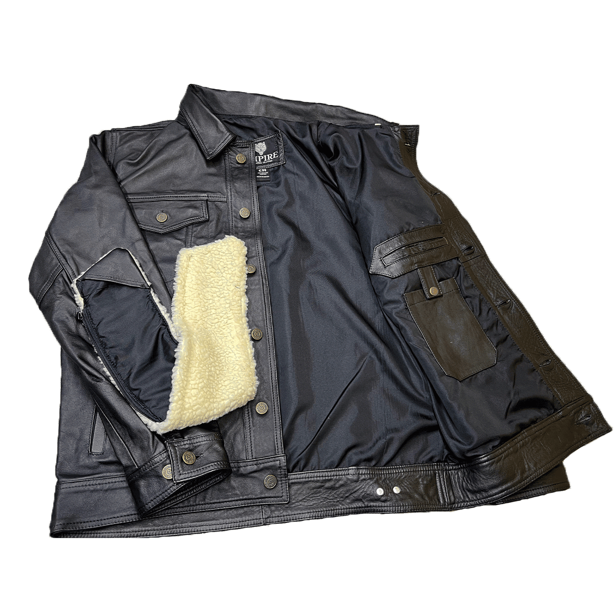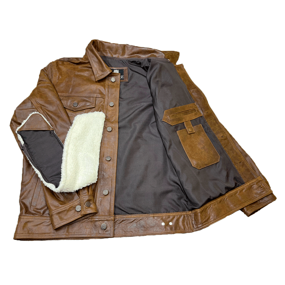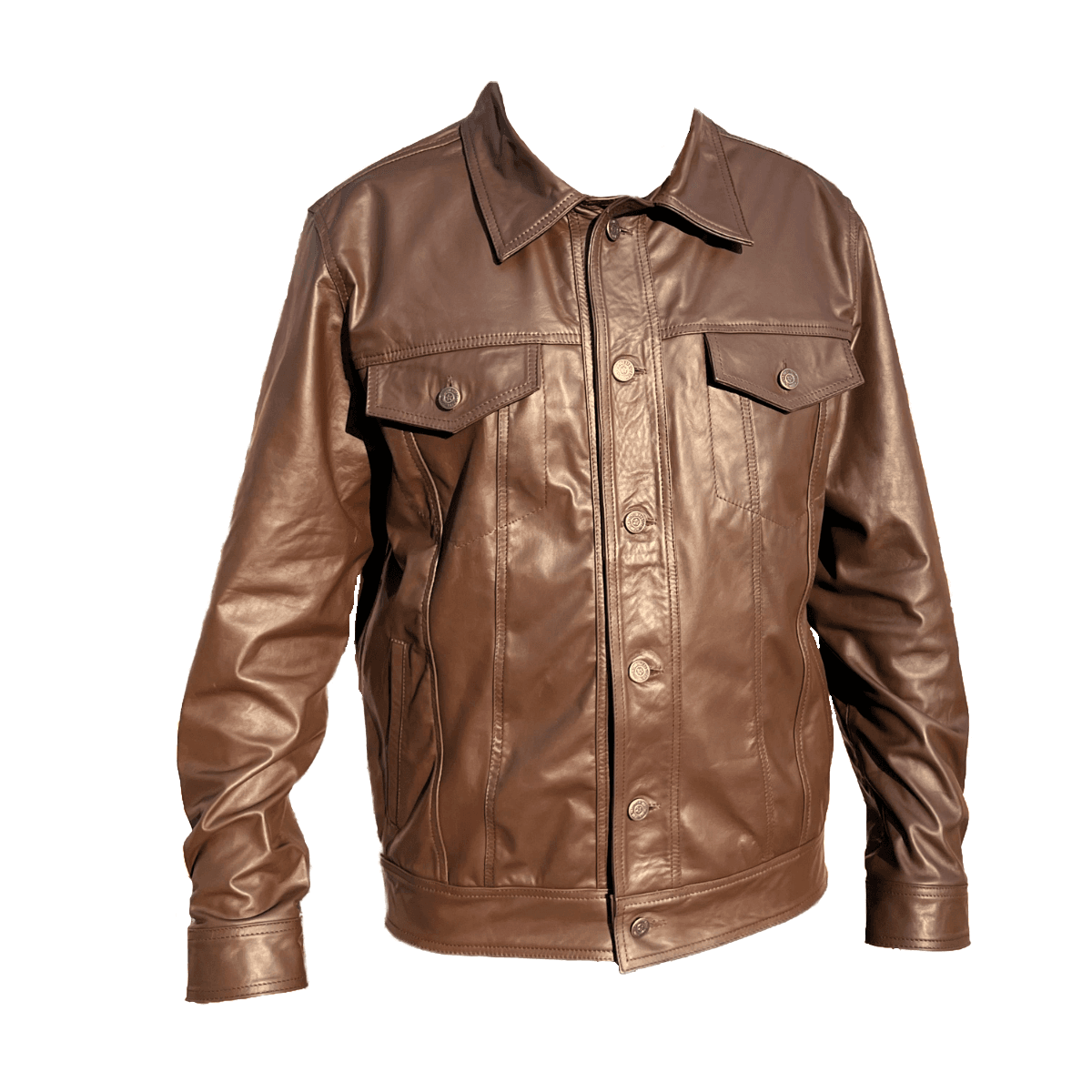 Chamarra Trucker Cuero Vacuno Hombre Empire - Forro Liso Slim Clásica Levis