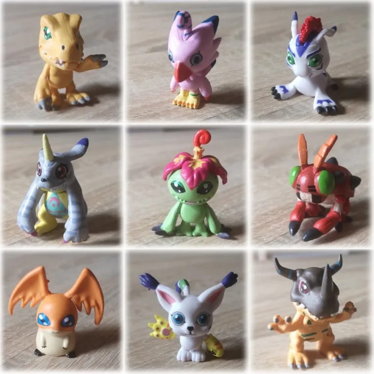 9 mini figuras: Agumon, Gabumon, Gatomon, Palmon, más
